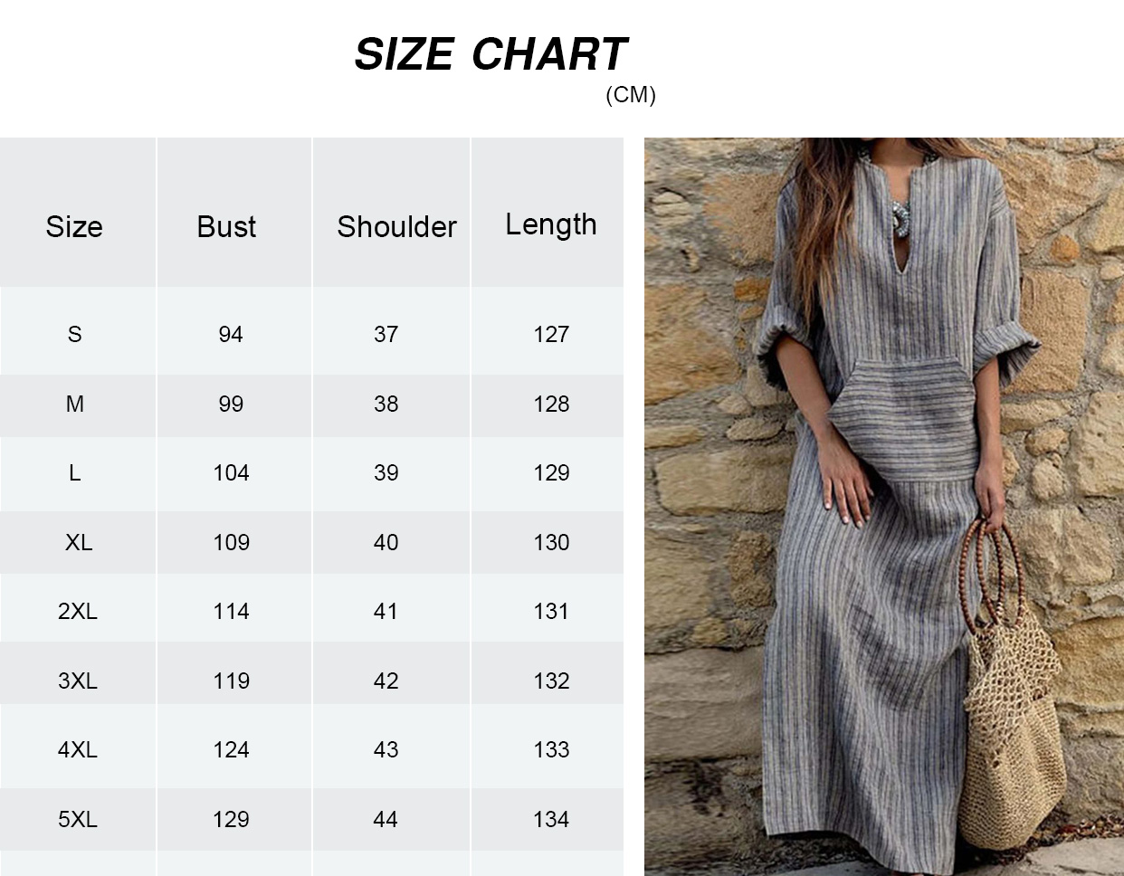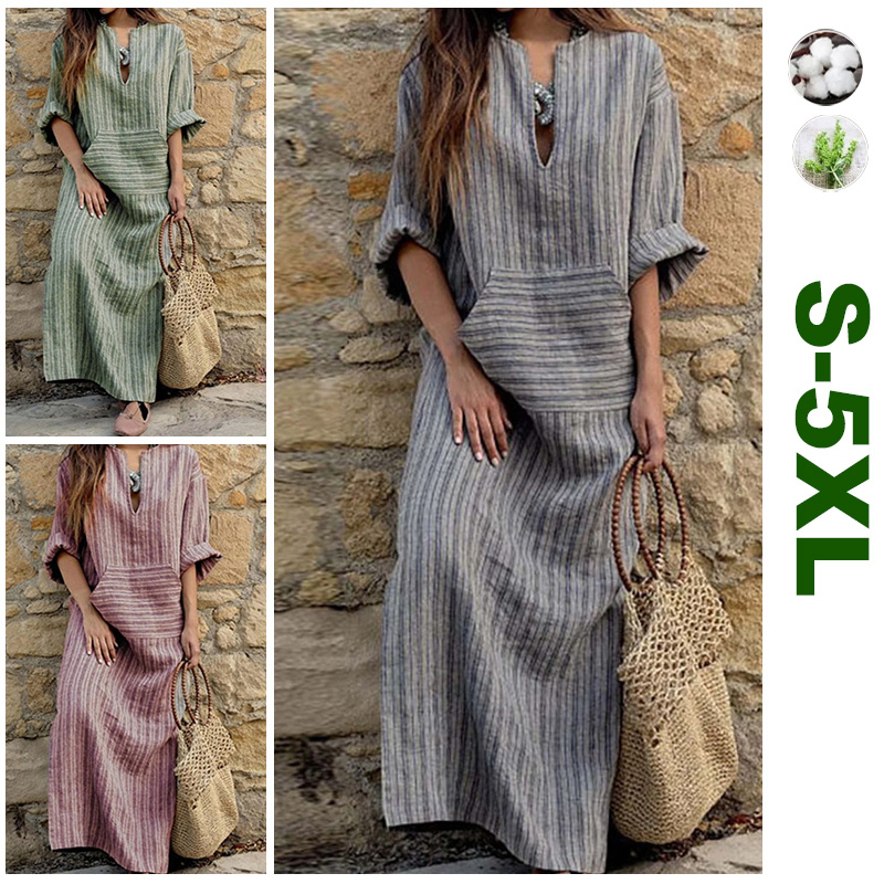 Cotton Linen Striped Loose Long Dress